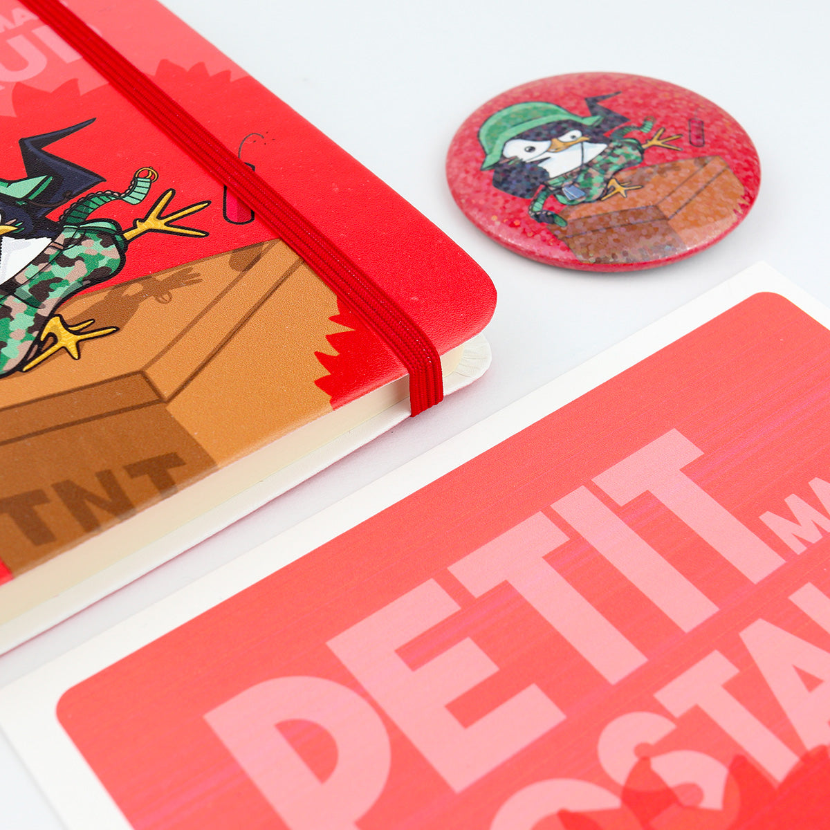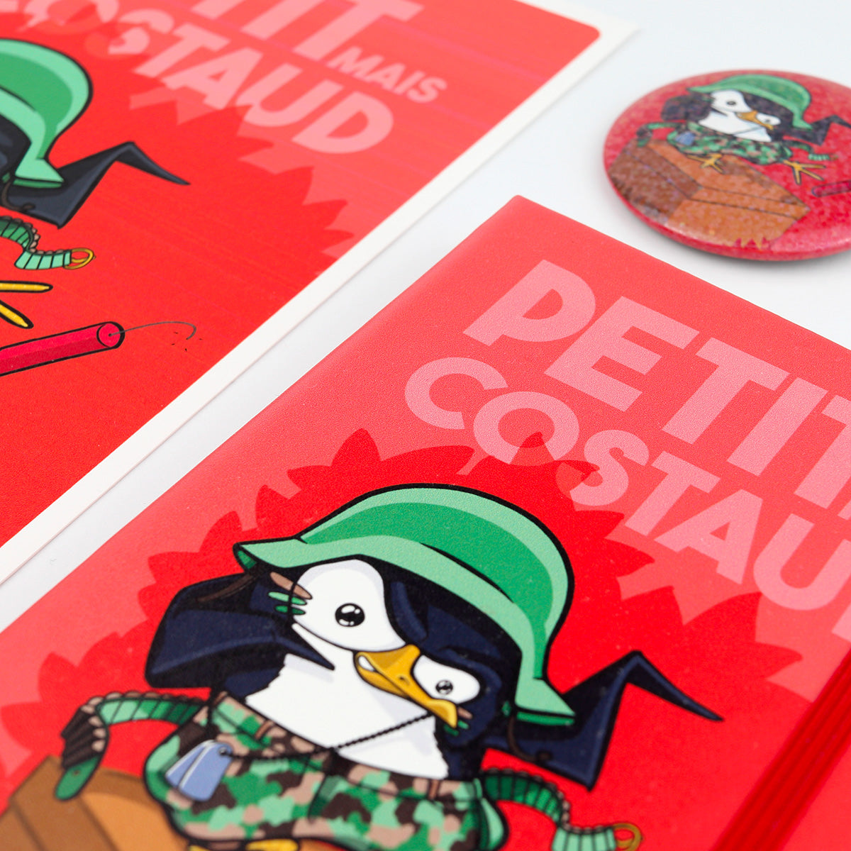 Ce pack Pingouin Soldat est idéal pour ajouter une touche d'originalité, de rouge éclatant et d'énergie à votre quotidien ! Parfait pour ceux qui apprécient les illustrations originales, les designs dynamiques et les accessoires de qualité.