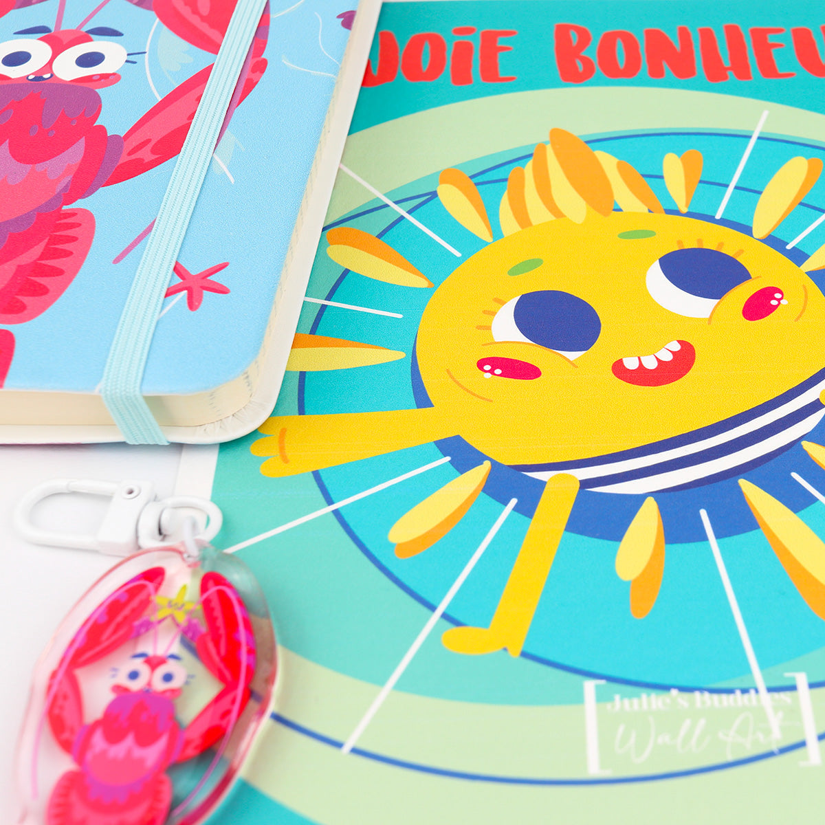 Ce coffret géant Homard et Soleil est parfait pour célébrer l'été, les vacances et la joie de vivre ! Avec ses couleurs tropicales (rouge, jaune, turquoise) et son énergie positive, c'est le cadeau idéal pour les amoureux de la mer et les amateurs d'illustrations joyeuses.